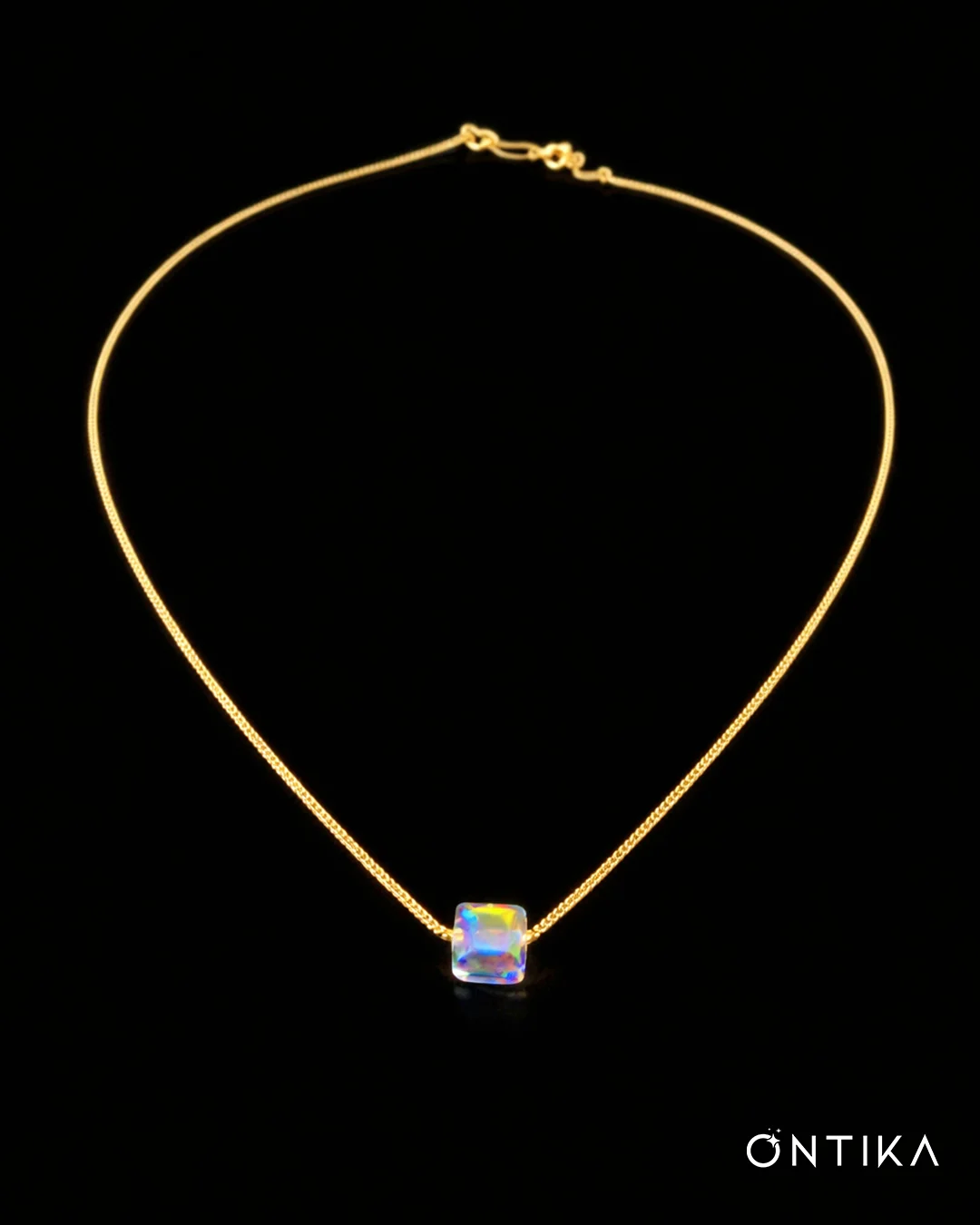 Aurora Prism Minimal Kolye, kuzey ışıklarını andıran renk geçişlerine sahip prizma kesim taşı ve zarif zinciriyle sade şıklığı modern bir ışıltıyla buluşturur.